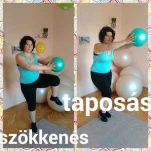 2.kör: klasszikus fenék gyakorlat térdelésben,a nehezítés az benne,hogy a térdhajlatban levő labdát folyamatosan szorítani kell 30mp, korcsolyázó mozdulat labda átadással 30mp,fenék gyakorlat a másik lábbal 30mp,terpesz-zár fej fölött labda átadássa 30mp